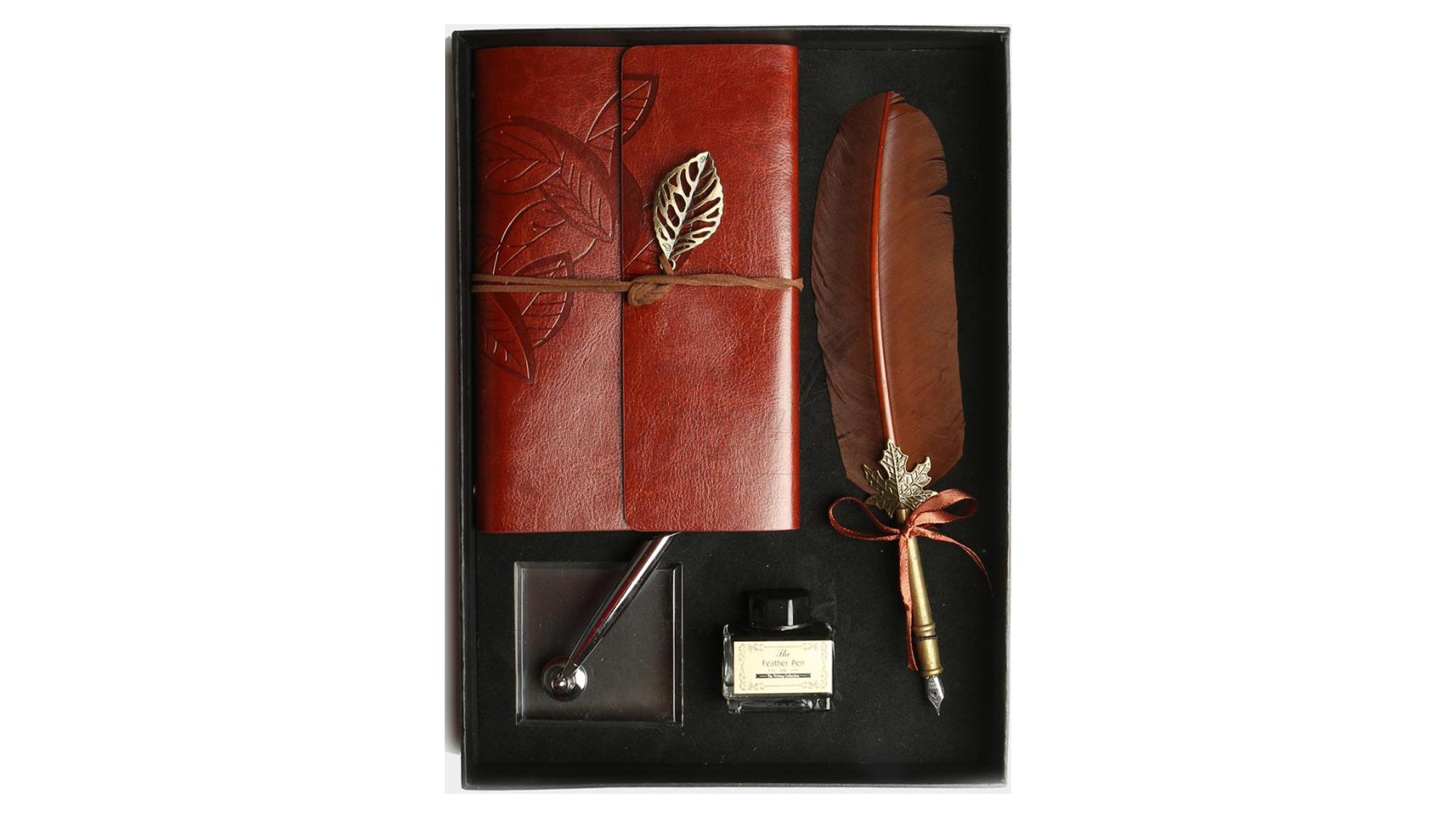 Brown Feather Dip Pen & Notebook Set